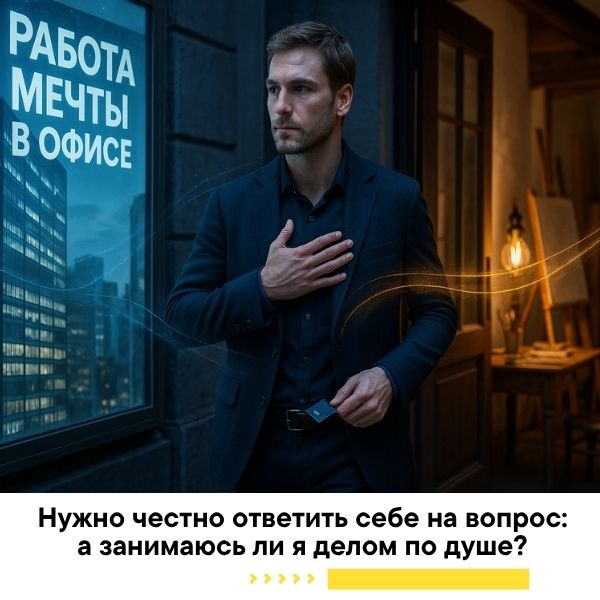 Между тем, не похоже, что вы сейчас занимаетесь любимым делом: рвения у вас нет, об интересе к тому, чем вы занимаетесь, вы не упоминаете. А ведь если был бы интерес, вы бы обязательно начали получать больше, как ваши коллеги ведь деньги приходят на истинную цель. И тогда нужно честно ответить себе на вопрос: а занимаюсь ли я делом по душе? Занимаюсь ли я делом, которое приносит мне удовлетворение и позволяет мне нести в миру пользу? И неважно, собственное ли это дело или я работаю в найме...