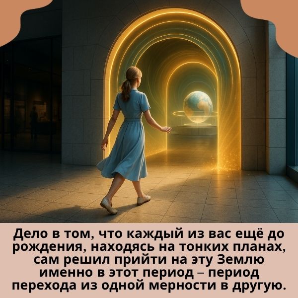 "Просыпаться" всем необходимости нет. Дело в том, что каждый из вас ещё до рождения, находясь на тонких планах, сам решил прийти на эту Землю именно в этот период – период перехода из одной мерности в другую, повышения вибрационного уровня Земли и наших энергий в целом.