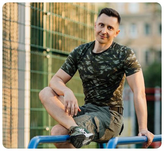 Создатель уникального комплекса «5D-гимнастика», нацеленного на развитие 5 базовых качеств: силу, ловкость, гибкость, координацию и выносливость.
