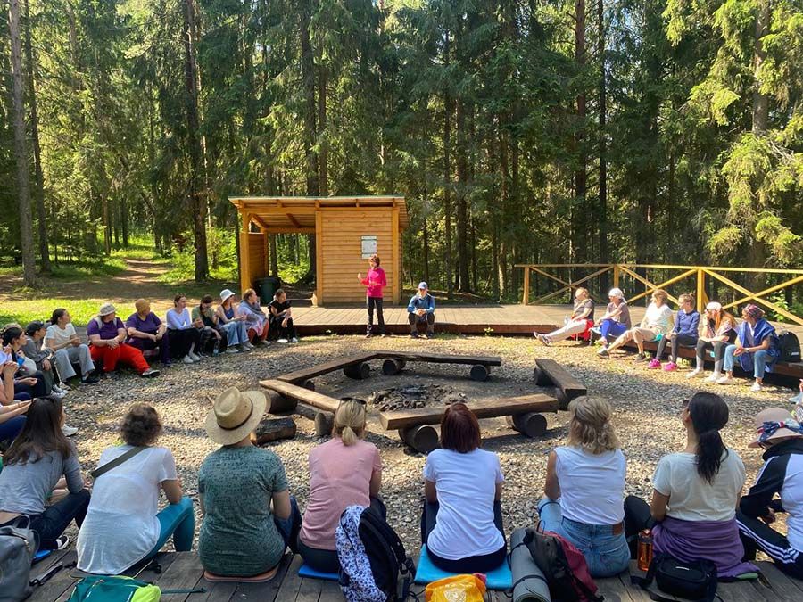 Помимо залов для практик и занятий спортом здесь находятся несколько крытых костровищ и беседок для вечернего общения, а также русская баня, расположенная на берегу озера.