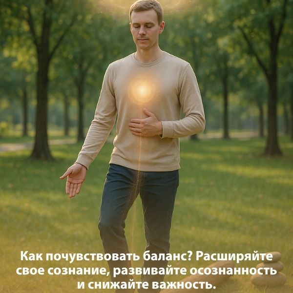 Как почувствовать баланс? Расширяйте свое сознание, развивайте осознанность и снижайте важность. Повышайте уровень личной энергетики через работу с телом и дыханием.