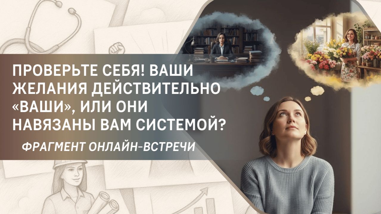 У вас есть желания? Наверняка есть! А с чем они связаны, чего вы хотите? В этом фрагменте бесплатного вебинара Татьяна Самарина предлагает вам вам посмотреть на свои желания со стороны, чтобы осознать: а действительно ли эти желания «ваши», или они появились под диктовку Системы.