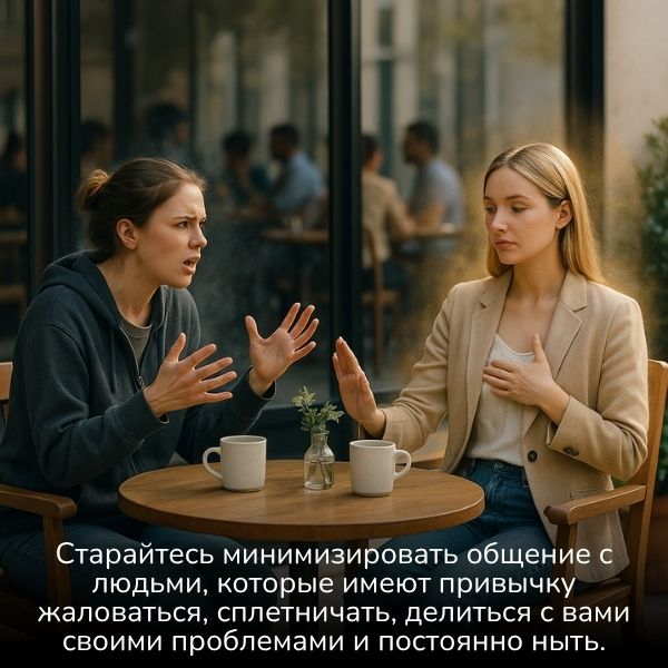 7. Старайтесь минимизировать общение с людьми, которые имеют привычку жаловаться, сплетничать, делиться с вами своими проблемами и постоянно ныть.