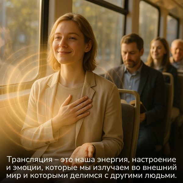 Трансляция – это наша энергия, настроение и эмоции, которые мы излучаем во внешний мир и которыми делимся с другими людьми. Вадим Зеланд в первой книге «Трансерфинг реальности» советует выработать привычку обращать внимание на всё хорошее, что с вами случается в течение дня, вплоть до мелочей: красивый цветок на клумбе, улыбка прохожего, солнечный лучик в окне и так далее. И чем больше вы впускаете в себя позитивного и радостного – тем больше встречаете хороших знаков, добрых новостей и благоприятных возможностей. Именно так «работает» трансляция: что вы излучаете в окружающий мир – то и притягиваете.