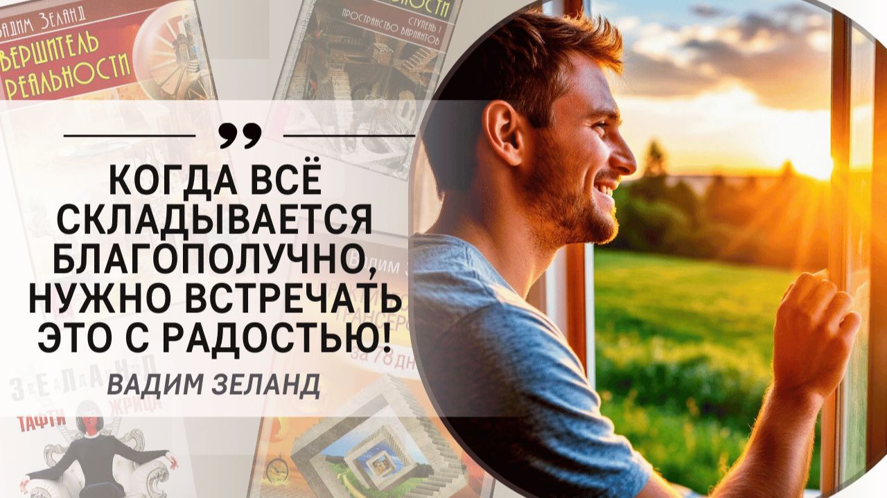 «Когда все складывается благополучно, нужно не принимать это равнодушно, как само собой разумеющееся, а встречать с радостью, заостряя свое внимание на том, что все идет прекрасно» (Вадим Зеланд)