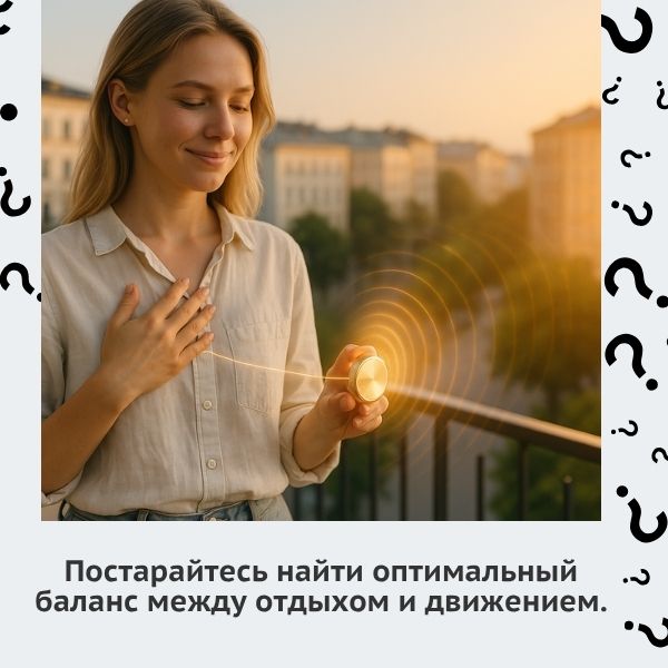 Постарайтесь найти оптимальный баланс между отдыхом и движением. Ведь одно дело – осознанно выделить себе время для отдыха и восстановления, и совсем другое – «заснуть» в своей зоне комфорта и полностью прекратить движение.