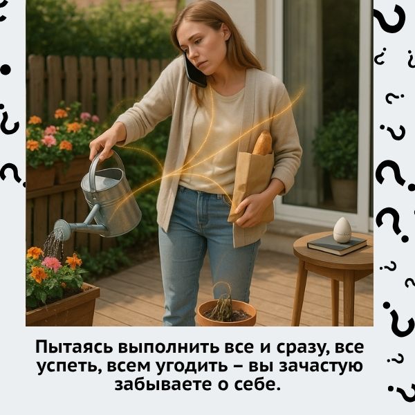 Пытаясь выполнить все и сразу, все успеть, всем угодить – вы зачастую забываете о себе. Вы стараетесь стать идеальным сотрудником на работе, примерным семьянином, хорошим сыном/дочерью/отцом/матерью/братом/сестрой… Вот только в сутках всего лишь 24 часа, и вы не можете их растянуть. Вы должны оставлять время на себя, на то, чтобы расслабиться, восстановиться и «перезагрузиться».