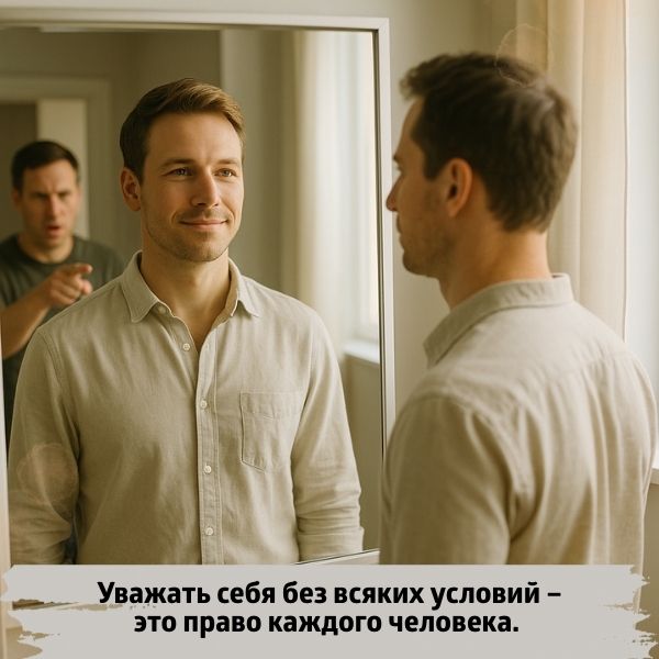 Есть люди, которые искренне считают: до тех пор, пока они не достигли успеха в каком-то деле, они не имеют права ожидать от других уважения и симпатии, они недостойны признания, и должны тихо «сидеть в своём углу» и не высовываться. Это деструктивная и очень опасная мысль. Уважать себя без всяких условий – это право каждого человека. Верните себе это право. Если вы сами себя не уважаете – то никто не будет вас уважать. Если вы себя не любите – вас никто не полюбит. Помните об этом.