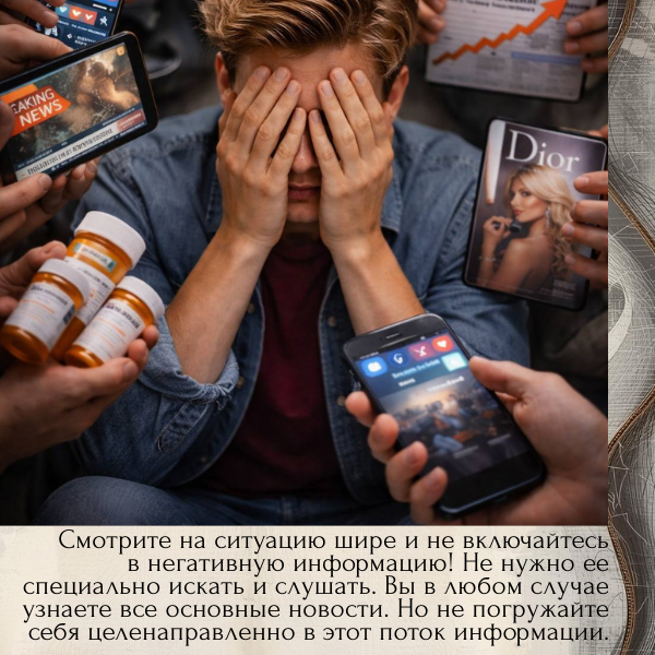 Так уж устроено наше привычное мышление: стоит нам «зацепиться» за какую-то плохую, тревожную новость, как нам становится любопытно узнать о ней как можно больше. И мы все глубже и глубже погружаемся в это болото негатива, да еще и делимся им с близкими людьми, пересылаем им мрачные новости и страшные истории. При этом мы не отдаем себе отчета в том, что и трансляция наша сбивается, и энергия утекает, словно сквозь пальцы.