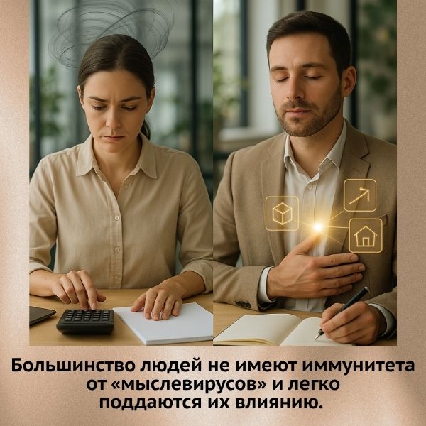 Давайте для начала разберёмся, что же это такое. «Мыслевирусы» – это навязчивые страхи, сомнения, переживания, негативные новости, предрассудки, установки, которые в постоянном фоновом режиме «шумят» у нас в голове, поглощая всё наше внимание и отвлекая от наших целей.