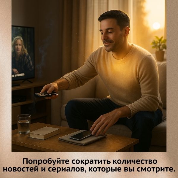 Попробуйте сократить количество новостей и сериалов, которые вы смотрите. Новости крадут вашу энергию, заставляя беспокоиться о самых разных вещах: войне, эпидемиях, убийствах, стихийных бедствиях… Миру от вашего беспокойства толку мало, а вот вам самим это наносит сильный урон, заставляя транслировать негативные эмоции и переноситься всё ближе к тем линиям жизни, о которых говорится в новостях.