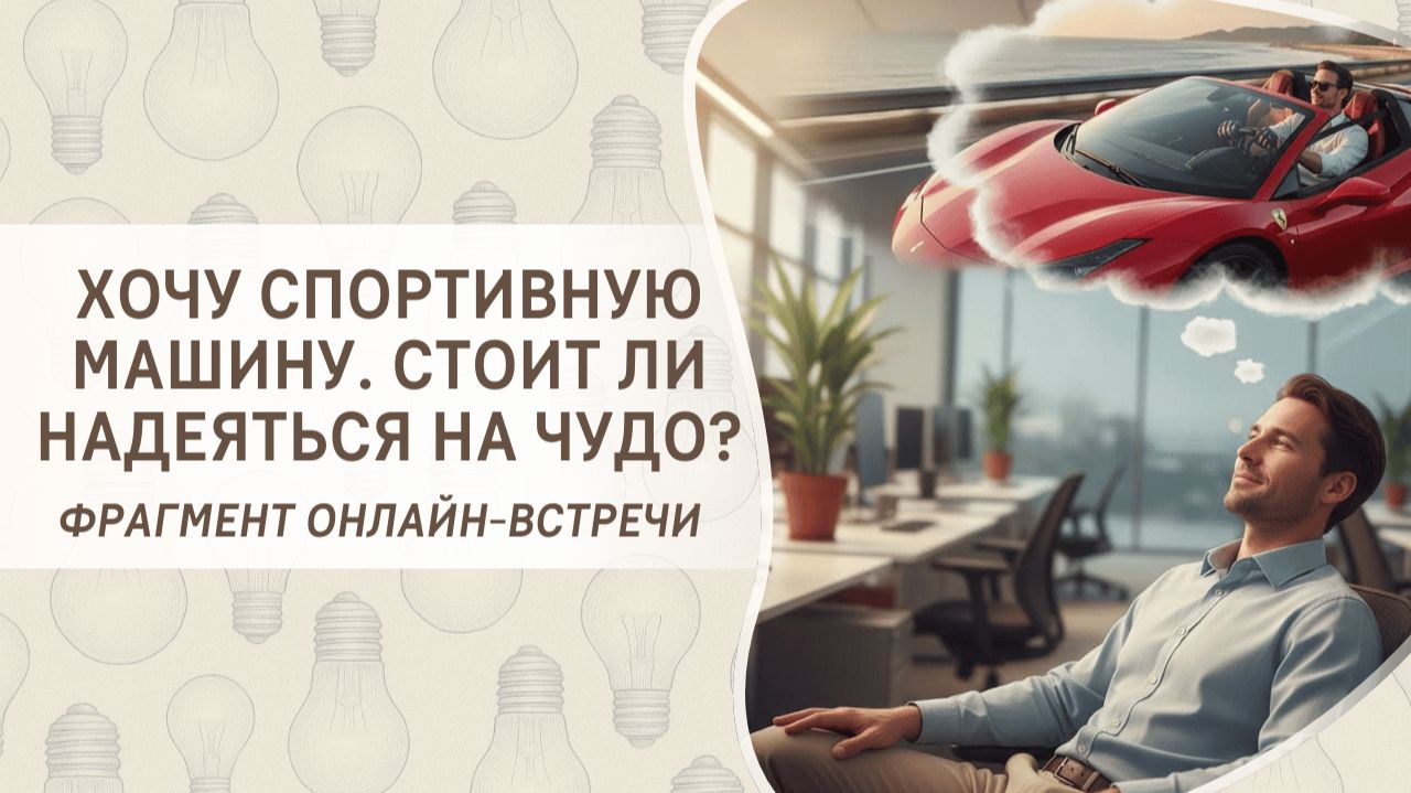 В этом фрагменте бесплатного вебинара Татьяна Самарина отвечает на вопрос участника вебинара: «Я хочу купить конкретную спортивную машину, но пока деньги не появляются, стоит ли ждать чуда?» Чтобы узнать ответ - смотрите это видео.