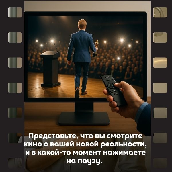 Именно этим целевой кадр из техник Тафти и отличается от целевого слайда из Трансерфинга, где мы расписываем и визуализируем все максимально подробно, во всех деталях. Кадр же – это мимолетная сценка, минута вашей жизни.
