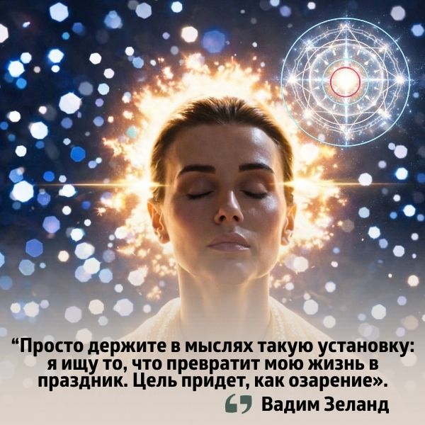 «Душа человека может лишь смутно догадываться, чего она хочет. Разум должен помочь ей определить свою цель. Но разум, в свойственной ему манере, пытается искать цель логическим путём. Это ошибка. Задача разума – не искать цель, а вовремя распознать её. В нужном месте, в нужное время, душа сама угадает Своё, и вы это почувствуете. Главное – предоставить душе возможность встретиться с целью. Нужно расширить свой кругозор: сходить туда, где ещё не бывали, посмотреть то, чего не видали, впустить в себя новую информацию, вырваться из круга обыденности. А дальше – поддерживать осознанность и внимательней прислушиваться к голосу сердца. Дайте себе неопределенный срок, не зажимайте себя во временные рамки и не превращайте поиск цели в обязанность. Просто держите в мыслях такую установку: я ищу то, что превратит мою жизнь в праздник. Цель придёт, как озарение. Когда, столкнувшись с какой-то информацией, вы почувствуете, что душа загорелась, а разум с удовольствием и со всех сторон это обдумывает, тогда можно предположить, что нашли то самое».