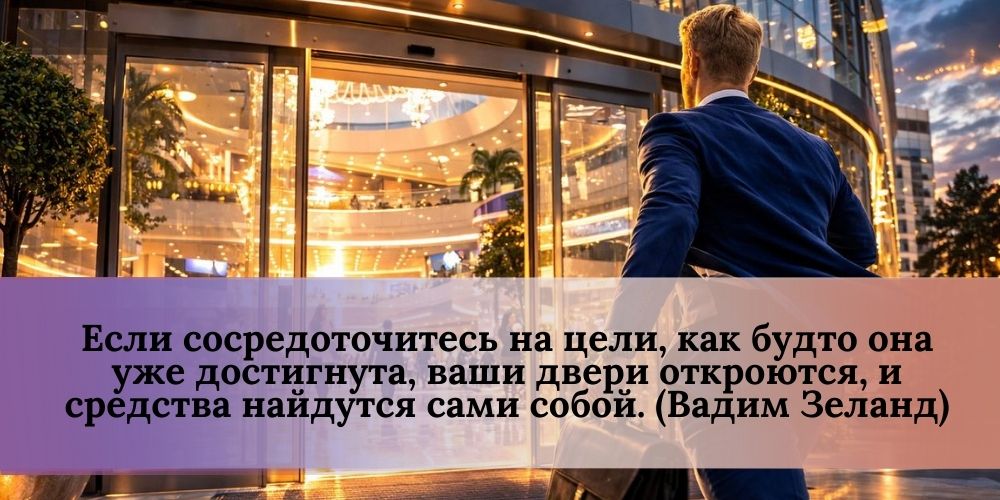 Если вы будете удерживать в голове конечный образ результата и транслировать энергию вашего намерения – уверенность, решимость иметь и действовать, вдохновение, радость – то средства найдутся сами собой, и все двери откроются перед вами.