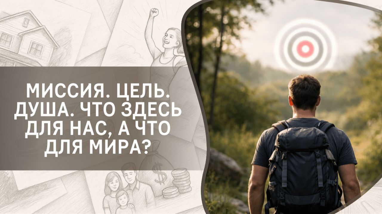 В этом фрагменте бесплатного вебинара Татьяна Самарина отвечает на вопрос: "Миссия это то, что вы даете этому миру, приносите ему пользу. А цель - это то, что вы получаете от мира для себя, любимого. Но непонятно, что же этому миру на самом деле от нас нужно?"