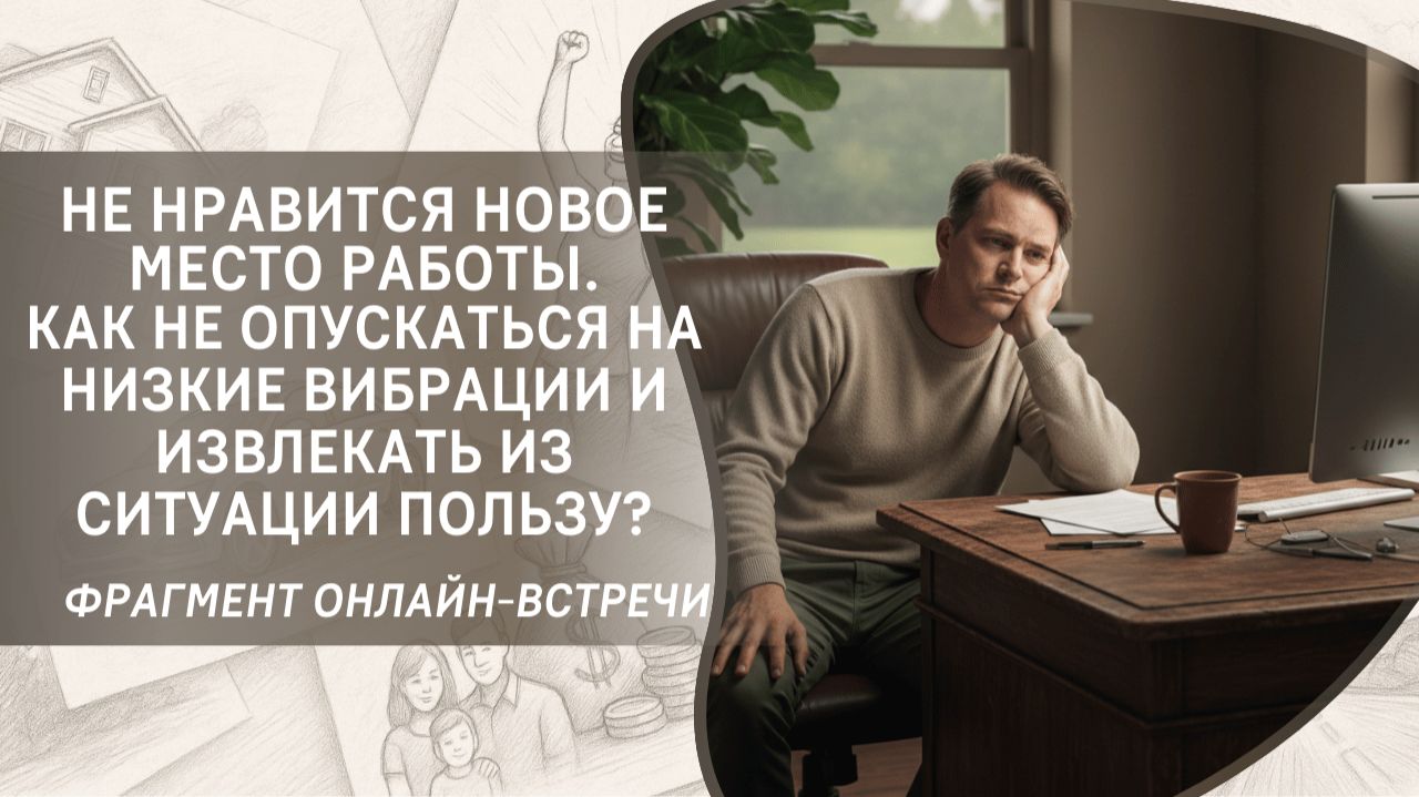 В этом фрагменте бесплатного вебинара Татьяна Самарина отвечает на вопрос подписчика: «Не нравится новое место работы, начальник - деспот. Как не опускаться на низкие вибрации и извлекать из ситуации пользу?»