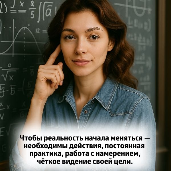 Продолжайте выполнять практики и задания, которые даются в шагах проекта «Я всё могу! Шаги к успеху», и вы увидите, как ваша реальность, пространство начнут меняться. Главное — постоянная практика и вектор на цель.