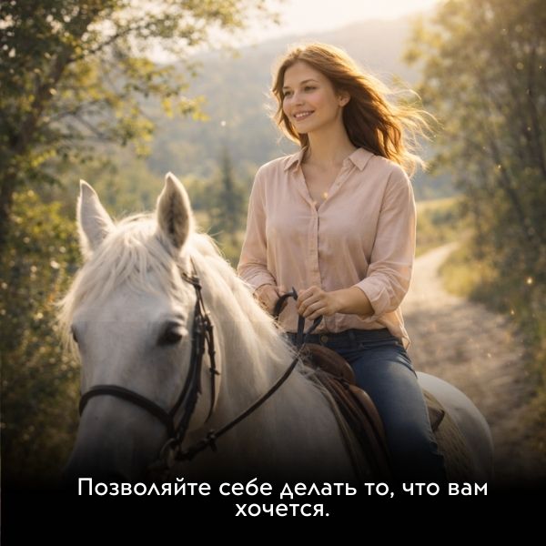 Человек, который живет легко, всегда помнит о своих желаниях и позволяет себе делать то, что хочется, чтобы каждый день был для него в радость и удовольствие. Разумеется, речь идет об экологичных желаниях, которые не вредят миру и окружающим. Например, прогуляться по парку, сходить на массаж, расслабиться в ванне с пеной, сделать себе новую прическу, купить свежих фруктов, покататься на велосипеде, помедитировать, покормить птиц, поиграть с животными, съездить на природу, совершить конную прогулку или поплавать в бассейне.