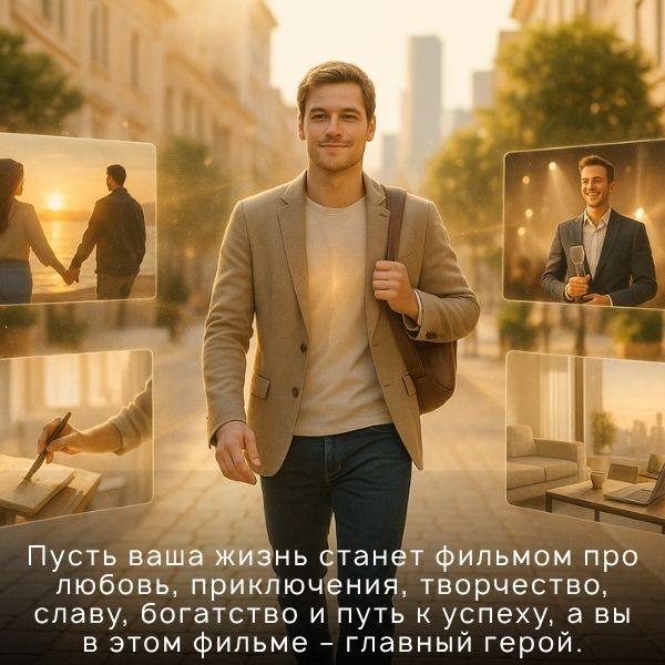 Этот способ позволит вам научиться выбирать себе любую судьбу по вашему усмотрению, точно так же, как вы выбираете любой фильм в кинотеатре. Что вы хотите посмотреть: захватывающий приключенческий фильм или комедийную мелодраму с счастливым концом? Вам вовсе необязательно выбирать фильмы ужасов, триллеры, драмы и катастрофы. Пусть ваша жизнь станет фильмом про любовь, приключения, творчество, славу, богатство и путь к успеху, а вы в этом фильме – главный герой, творец своей жизни!