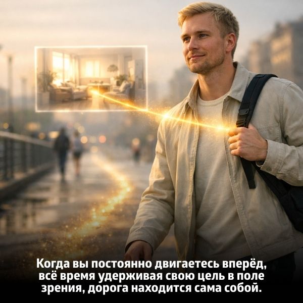 Когда вы постоянно двигаетесь вперёд, всё время удерживая свою цель в поле зрения, дорога находится сама собой. Трансерфинг реальности – это исключительно активный способ существования, когда вы не просто плещетесь в воде, а сознательно гребёте в направлении к цели.