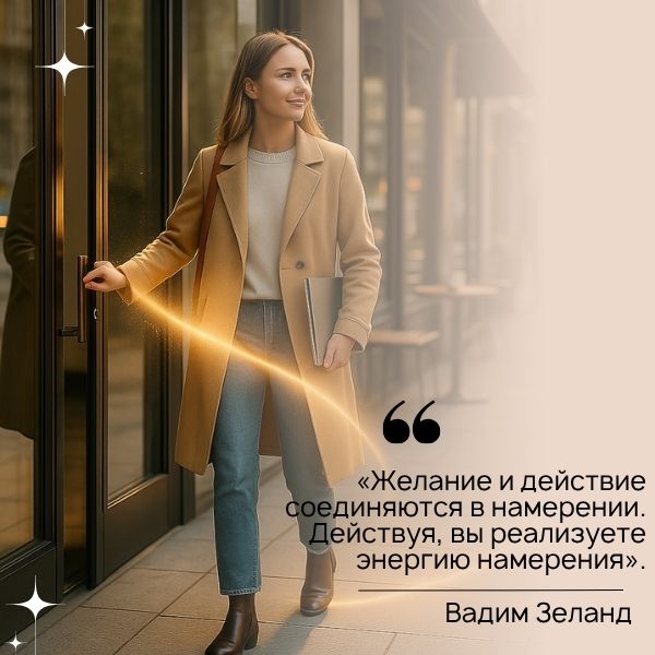 В Трансерфинге мы всегда говорим о том, что желание и действие необходимо соединять в намерении. Намерение – это решимость иметь и действовать. Это четкая и емкая формулировка того, что вы хотите получить, вашей конечной цели, желаемого образа результата.