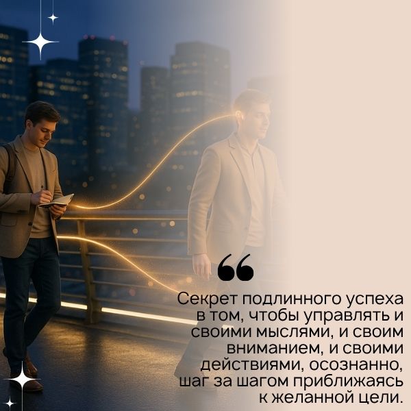 Всегда, какие бы практики вы ни выполняли, необходимо продолжать совершать конкретные действия в материальной действительности. Секрет подлинного успеха в том, чтобы управлять и своими мыслями, и своим вниманием, и своими действиями, осознанно, шаг за шагом приближаясь к желанной цели.