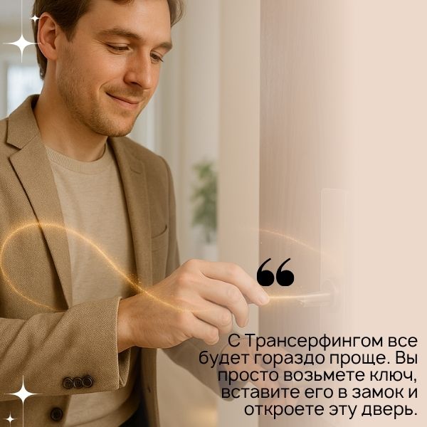 Представьте себе такой простой пример. Вот вы стоите в коридоре, в котором – множество закрытых дверей. Вы не знаете, какая из них ваша, и начинаете стучаться во все подряд. Так происходит, когда вы не соединены с собой, когда вы не слышите свою Душу и ее истинные потребности. Вы совершаете очень много действий, которые могут быть малоэффективными, а то и вовсе бесполезными. Трансерфинг помогает определить, какая дверь вам нужна, и чего именно вы хотите на самом деле.