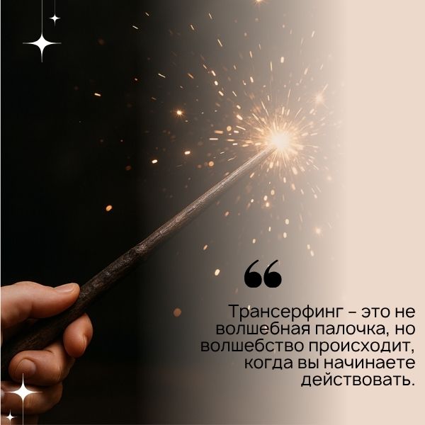 На самом деле Трансерфинг – это не волшебная палочка, но волшебство происходит, когда вы начинаете действовать. Вадим Зеланд в своих книгах о Трансерфинге все время подчеркивает, что ценно не только практиковать, но и действовать, то есть совершать конкретные шаги по направлению к цели в материальной действительности.